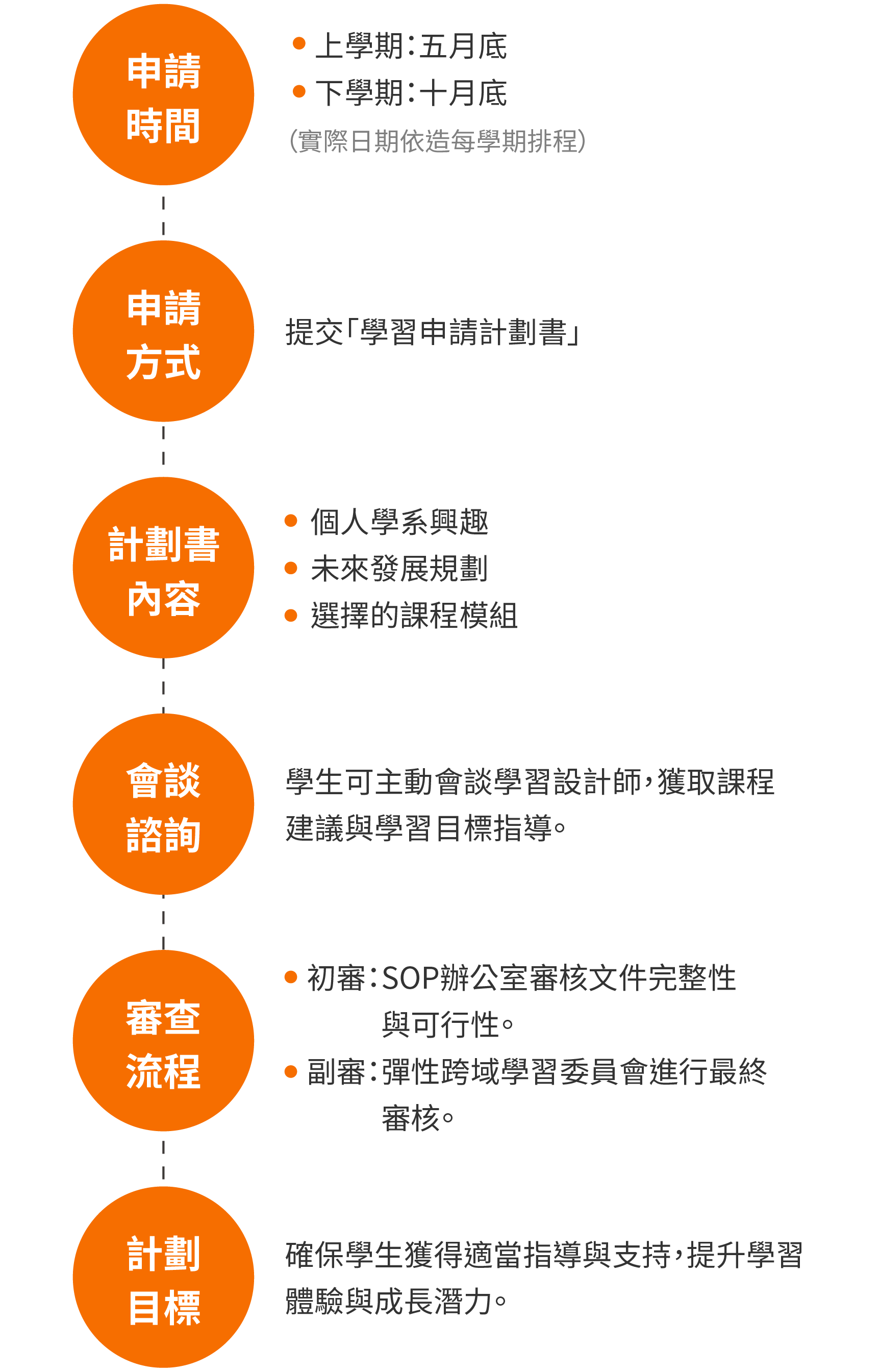 申請機制採「旋轉門設計」,學生可於任意階段進出彈性學制,啟動適性化學習路徑。